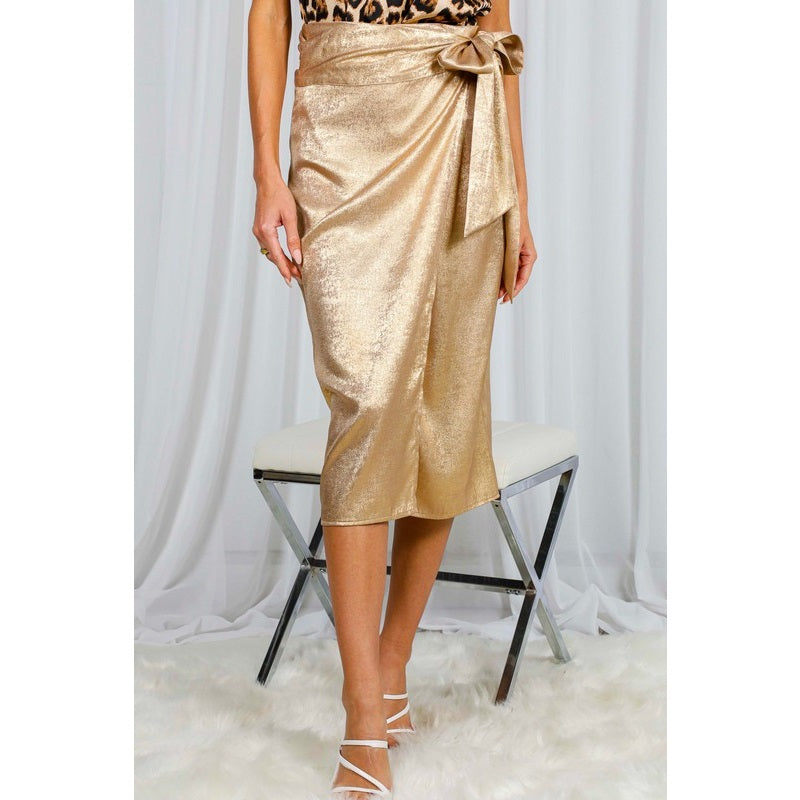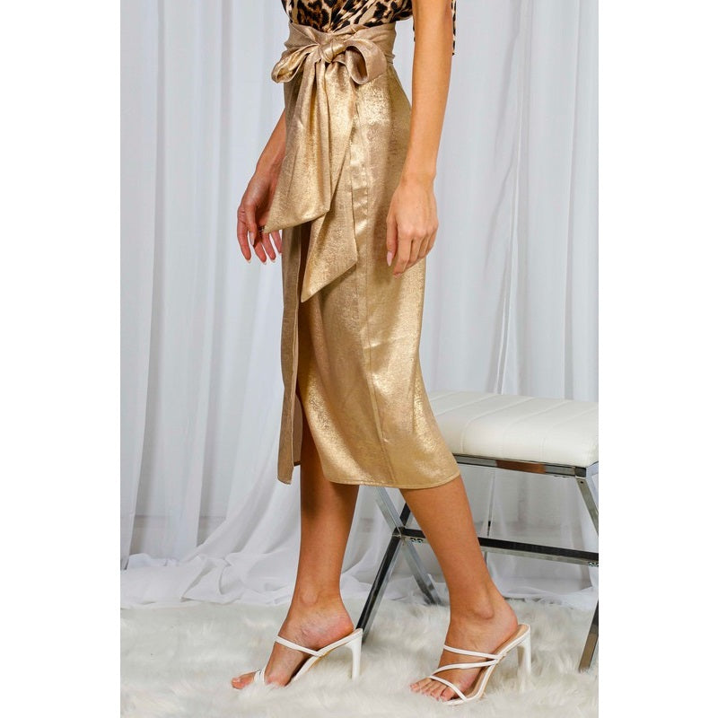 Gold Side Tie Midi Skirt (Pre-Order)